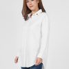 - Áo sơ mi nữ dài tay, cổ đức, thêu hình ở ve cổ áo, phom dáng suông.